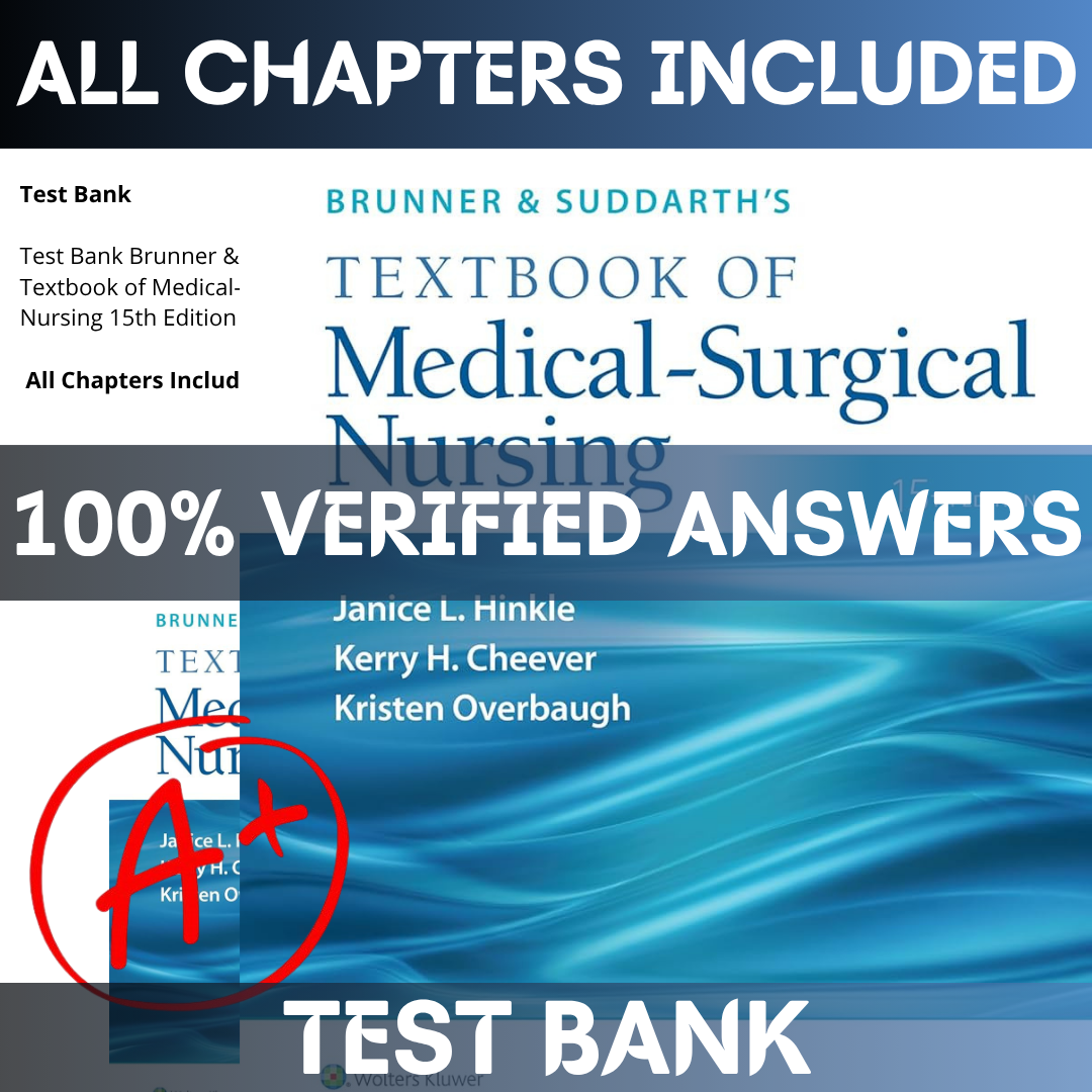 Test Bank Brunner & Suddarth’s Textbook of Medical-Surgical Nursing 15th Edition Hinkle | All Chapters Included